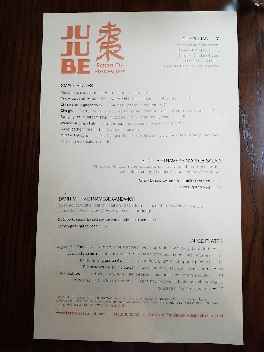 Welcome to Jujube, a culinary gem located at 1201 Raleigh Rd L in Chapel Hill, NC. This delightful eatery, led by the innovative Head Chef Nadia, offers a menu that celebrates authentic Asian flavors with a modern twist. Every dish is crafted with care, ensuring an exquisite dining experience.